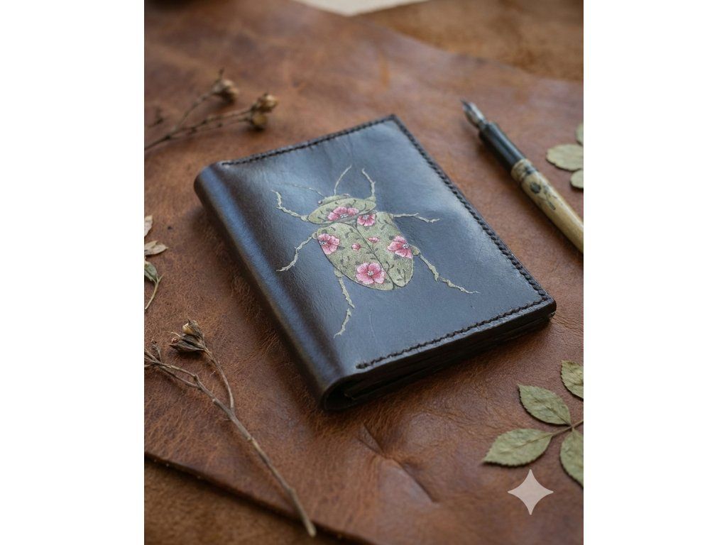 Kompaktní kožená peněženka s tetováním brouka